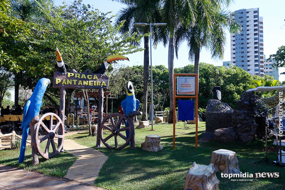 Perto da Prefeitura, tem decoração inspirada no bioma do Pantanal, com estátuas de animais criadas pelo artista plástico Levi Batista. Vale o passeio para foto.