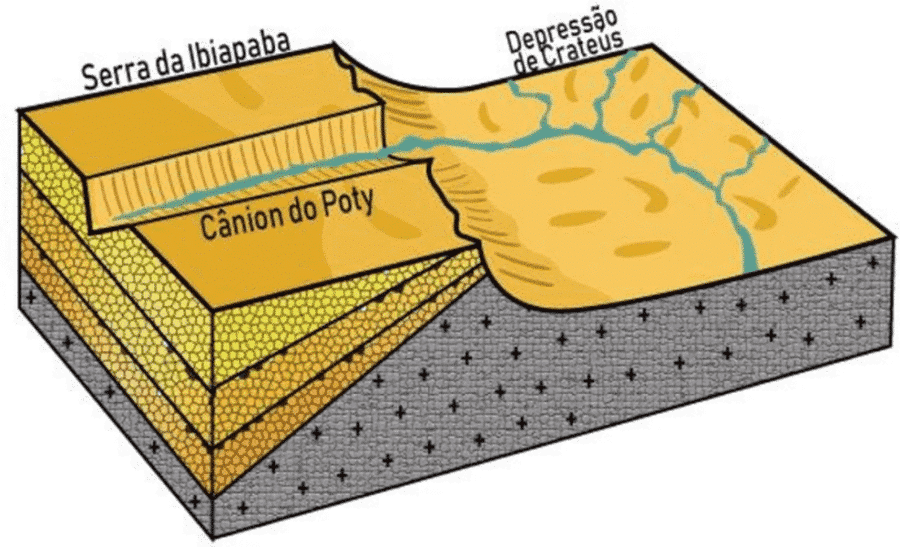 Com a evolução no tempo desses processos erosivos, o resultado foi a formação do Cânion do Poti, o surgimento da Serra da Ibiapaba (que representa o contato desnivelado, o ressalto, entre cristalino e sedimentar) e a formação de uma ampla área rebaixada no sopé da Ibiapaba, que corresponde ao que chamamos de sertão.
