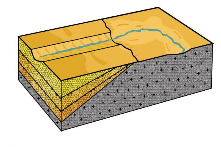 Enquanto cavava no cristalino, o rio ia aprofundando o vale no sedimentar, para que o leito do rio estivesse sempre no mesmo nível de altura topográfica. Vários afluentes surgiram no lado do cristalino, e foram ajudando no processo de alargamento do vale.
