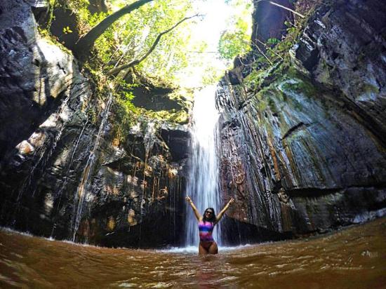 Esta cachoeira é acessível através de um veículo, seguida de uma trilha curta até a entrada de uma caverna. A água cai de 15 metros em um poço raso, e a atmosfera única é complementada por uma caverna menor e mais escura atrás da cachoeira.