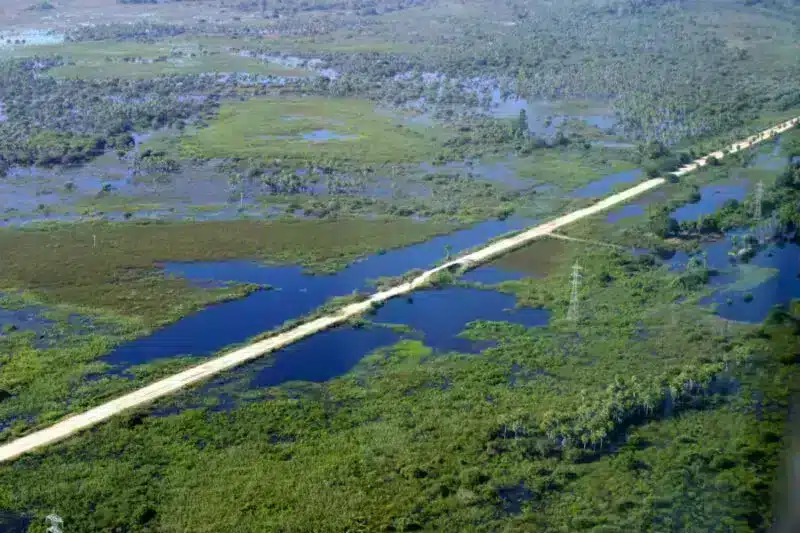 Seus 120 quilômetros de terra – interligados por 87 precárias pontes de madeira e transitáveis durante a época das chuvas somente em veículos com tração nas quatro rodas – cortam uma área pantaneira bela e selvagem.