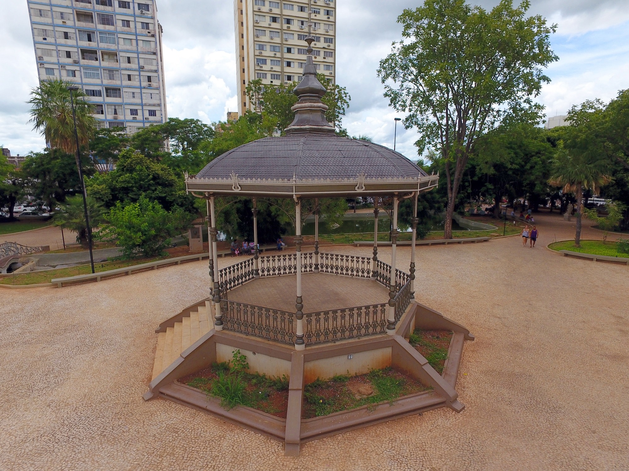 Também nessa praça está um coreto em forma octogonal e um mosaico de calçamento vindos da Alemanha.