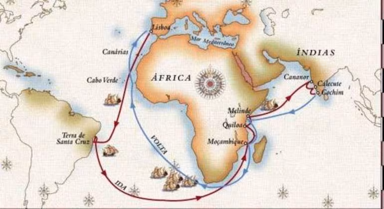 Numa dessas viagens, Pedro Alvares Cabral teria acidentalmente desviado de curso e descoberto uma nova terra a oeste da África, mas tais terras, que viriam a ter diversos nomes até chegar à forma atual, Brasil, de imediato não despertaram o interesse da Coroa Portuguesa, exceto talvez pelo pau-brasil e por outras ditas especiarias encontradas em muito menor volume, já que os esforços financeiros e materiais estavam sendo despendidos nas rotas marítimas extremamente lucrativas que levavam ao que levavam ao Oriente.