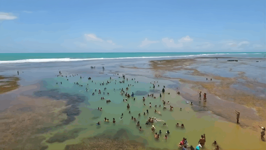 - Ikonische Kulisse: Kokospalmen am Meer, natürliche Schwimmbecken und die charmante Kirche São Benedito.