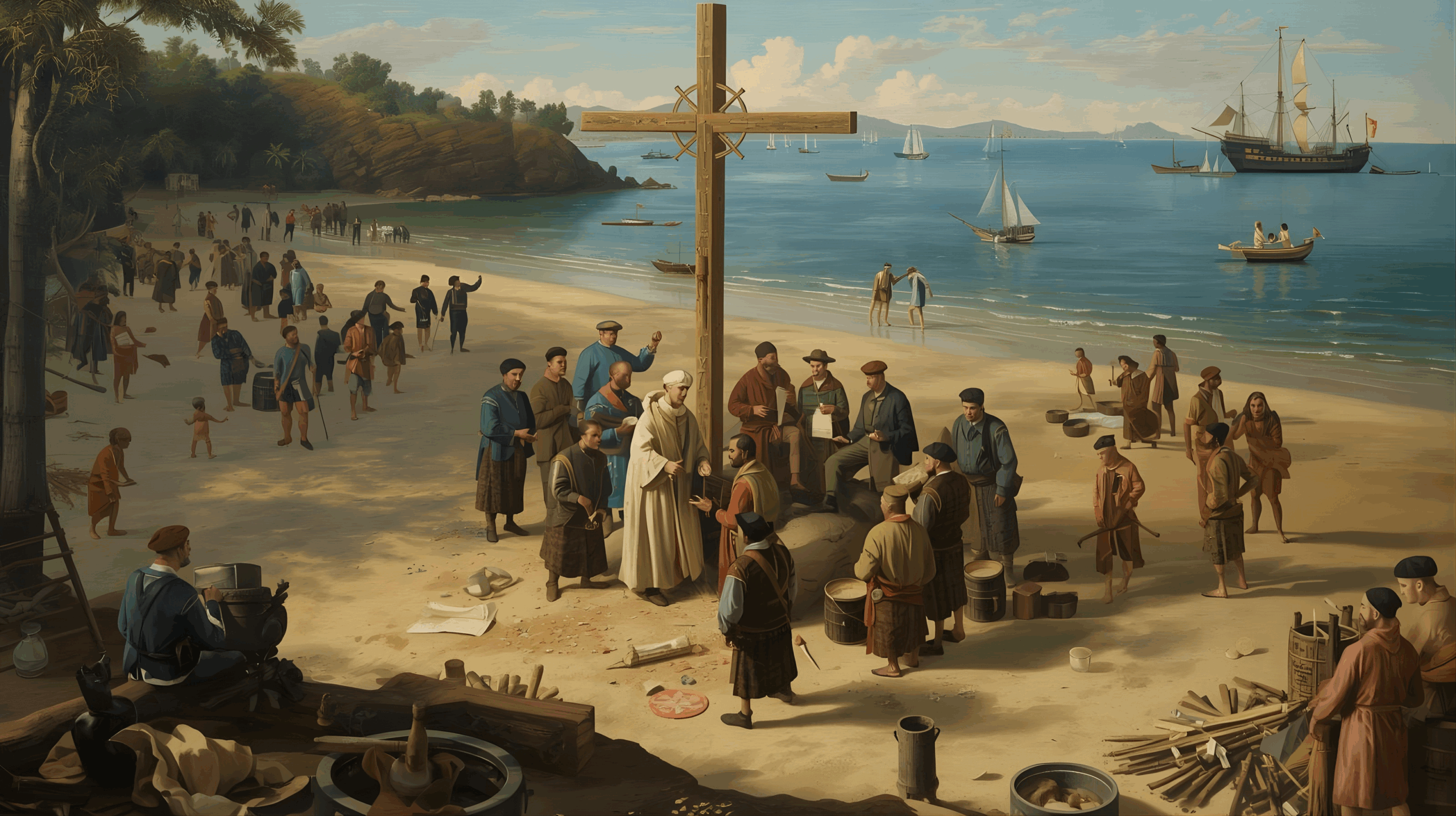 Frei Henrique de Coimbra hielt die Messe und predigte anschließend über die Entdeckung des neuen Landes, das dem Kreuz Christi gewidmet war – unter dessen Flagge alle gekommen waren. Die Ureinwohner verfolgten die religiöse Zeremonie aus der Ferne vom Strand aus.