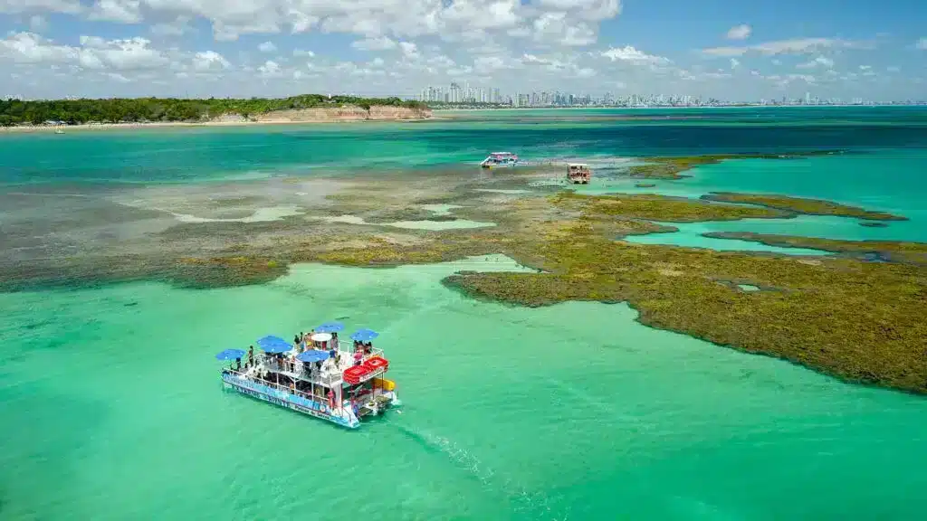 - Strand von Jacumã: Berühmt für sein ruhiges und klares Wasser, ideal zum Schwimmen und für Familien mit Kindern. Der Strand ist von Kokospalmen und der typischen Vegetation des Nordostens umgeben. Eine der Hauptattraktionen von Jacumã sind die natürlichen Pools, die bei Ebbe von den Riffen gebildet werden und ideal zum Schnorcheln und Beobachten von bunten Fischen sind, sowie Kioske und Verkaufsstände.