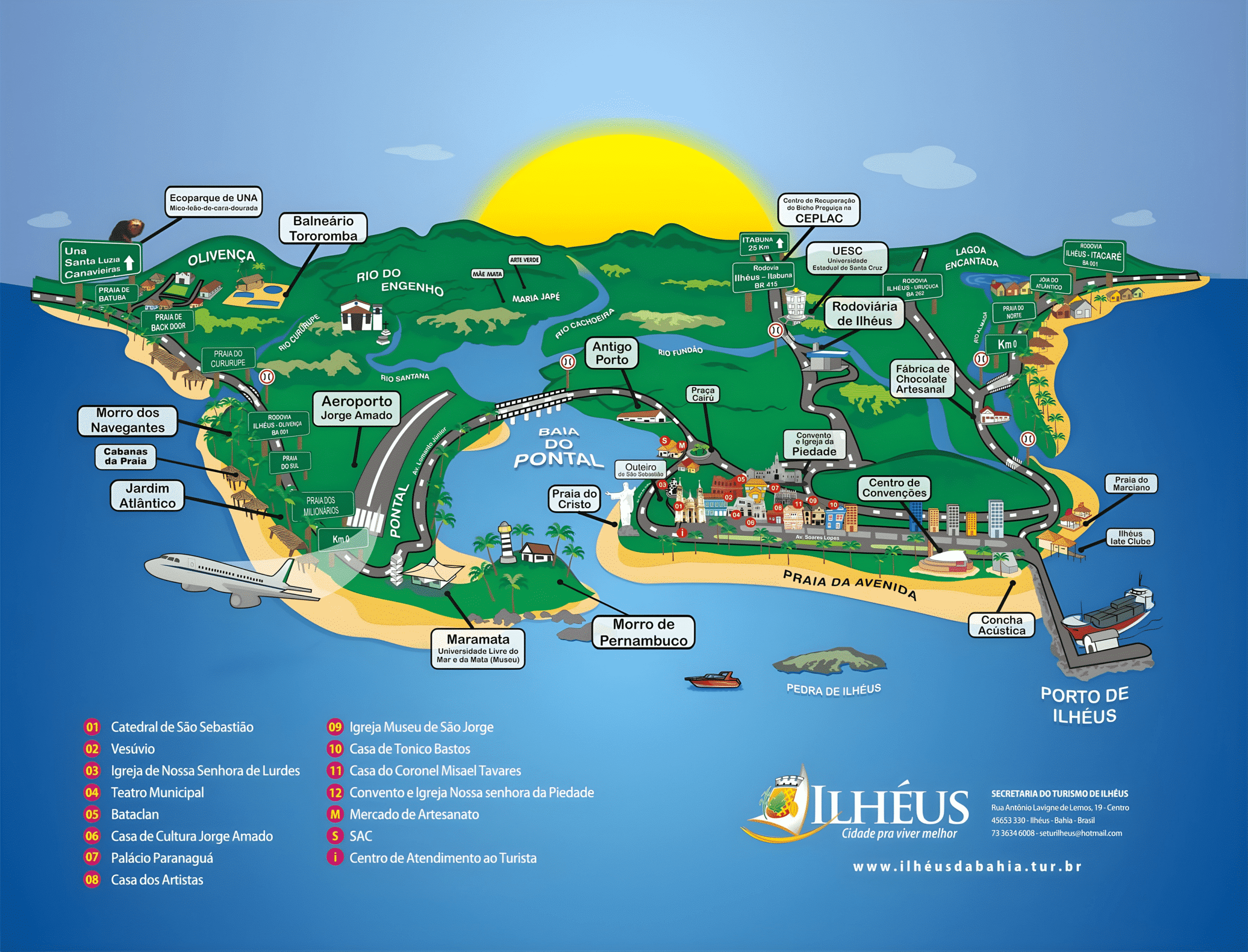 In Ilhéus finden das ganze Jahr über Veranstaltungen statt: Kreuzfahrten, Angelwettbewerbe, Märkte und Sportwettkämpfe. Der Stadtteil Olivença verfügt über eine gute touristische Infrastruktur und ist das Tor zu Stränden und Wanderwegen.