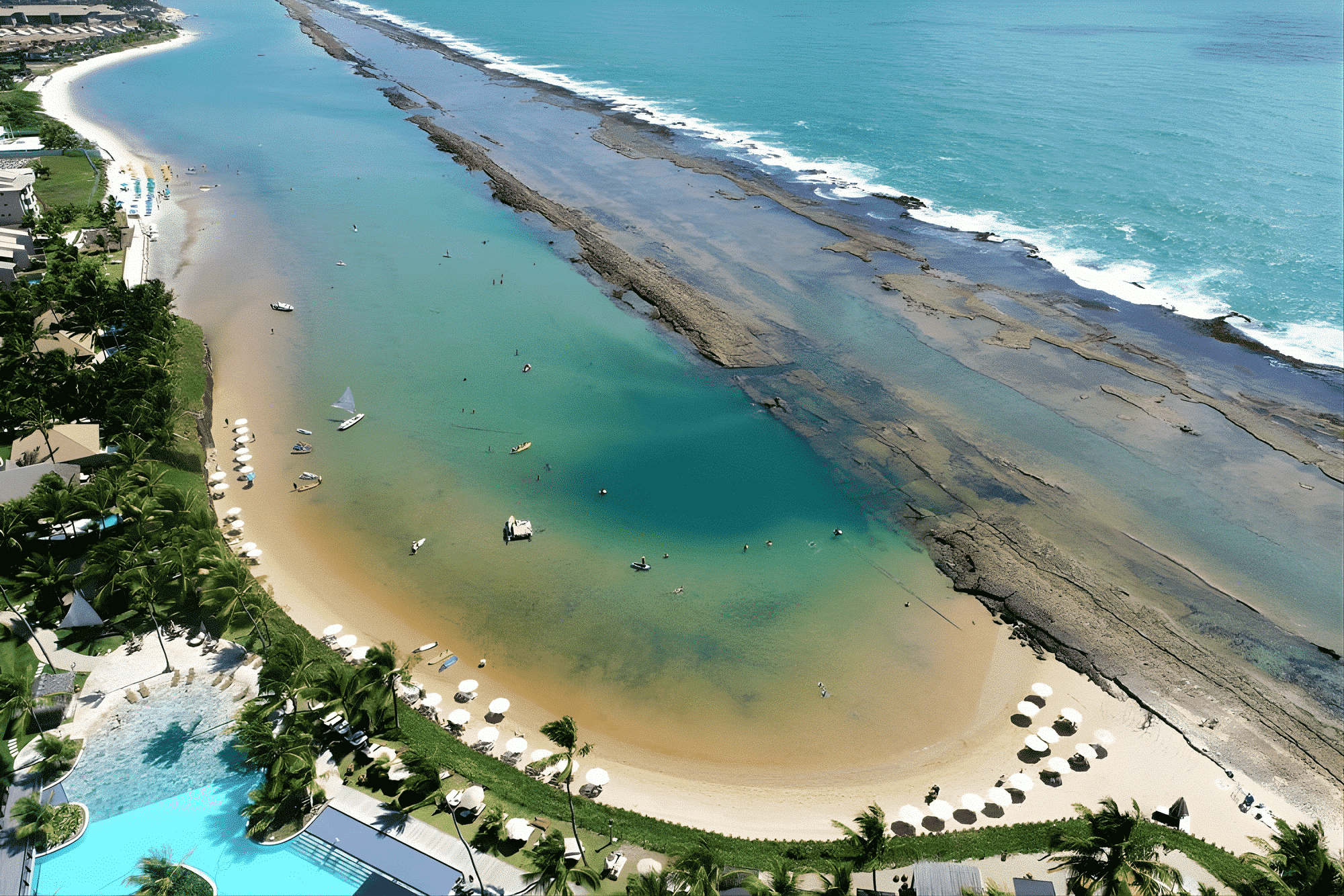 Von Recife aus erleben Sie alles – vom pulsierenden Stadtleben in Boa Viagem bis hin zu den natürlichen Wasserbecken von Porto de Galinhas, den ruhigen Gewässern von Muro Alto, der charmanten kleinen Kirche von Carneiros und den Klippen von Calhetas.