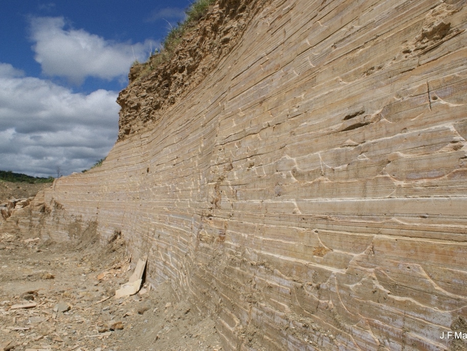Die Struktur enthält auch Ichnofossilien, die Spuren der Lebensaktivität früherer Organismen, in diesem Fall wirbelloser Wassertiere, darstellen.