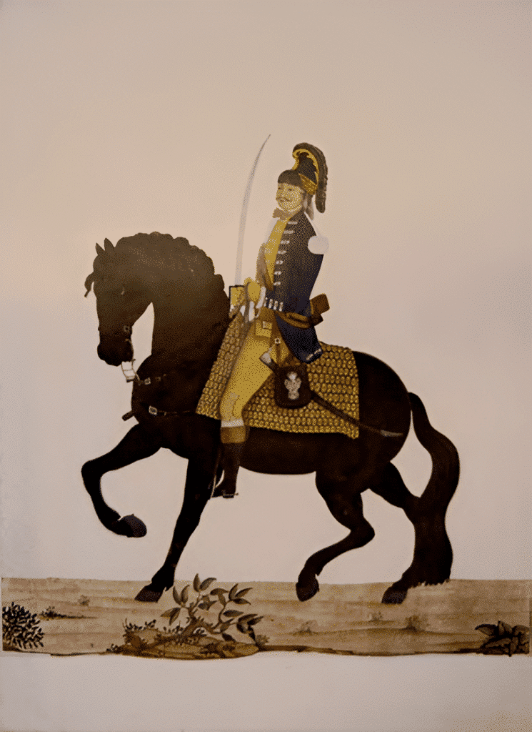 With the establishment of the Terror, he served in the army organised by Prince Louis V Joseph de Bourbon-Condé (1736-1818), one of several French royalist émigré armies that joined forces with Great Britain, Russia and Austria against revolutionary France.