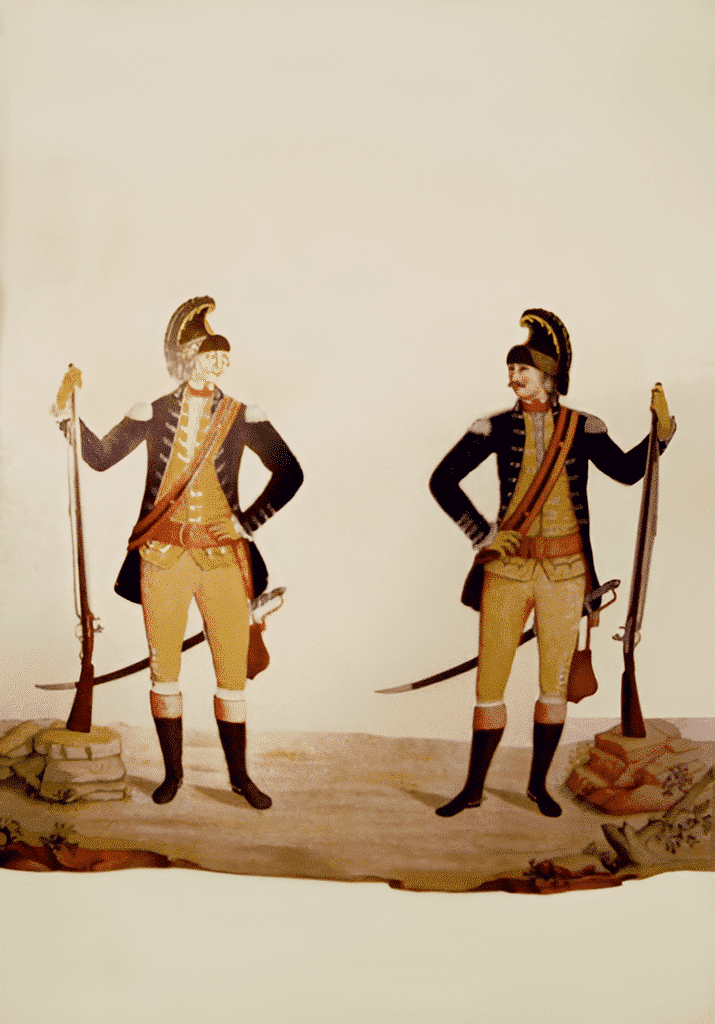 Faced with this threat, Portugal once again turned to England for military aid. From 1797 onwards, George III sent auxiliary forces to Lisbon, which included not only English and Irish officers, but also three regiments of French emigrants in the service of Great Britain (Cordeiro 1895).
