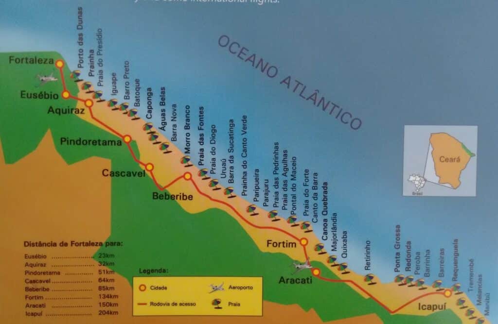 This municipality, known as the Land of Good Winds, is located in the state of Ceará, Brazil, about 150 kilometres from the capital of Ceará, Fortaleza.