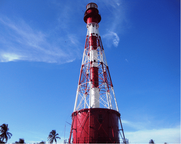 The tower, built with wooden columns resting on iron piles, had a 6th order light apparatus with a fixed white light and a range of 10 miles, with a focus at a height of 16 metres.