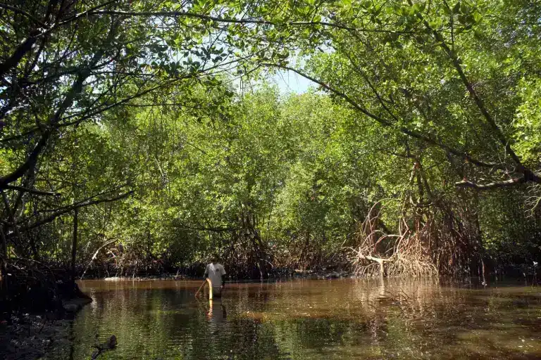 Considered one of the wildest parts of Paraíba, Barra do Camaratuba is home to the Uçá Crab Trail, a hike that starts in the shallow waters of the mangrove swamp, follows the current of the river and ends at the mouth of the Camaratuba River, right on the beach.