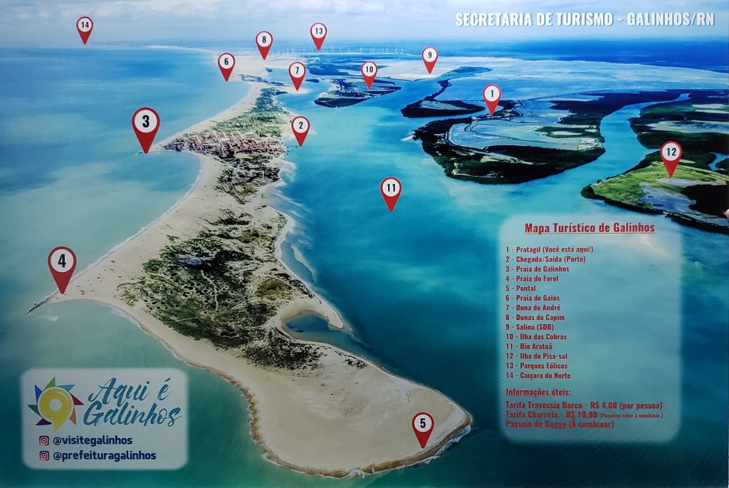 Situated on a peninsula, Galinhos covers an area of 342 km² and is home to around 2,300 inhabitants, surrounded by dunes, salt marshes, mangroves, beaches and a river.