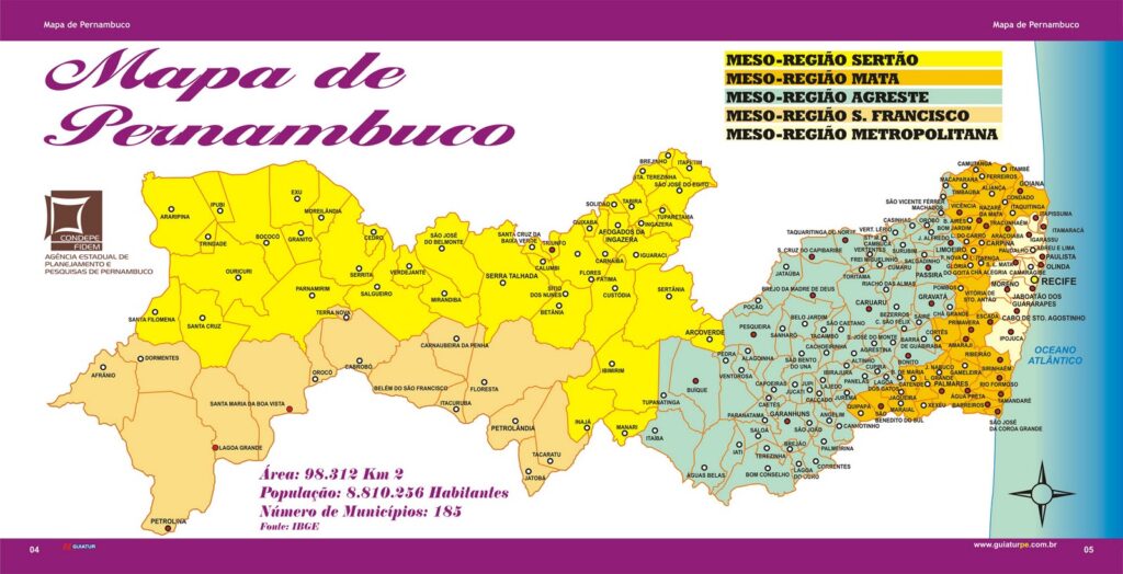 It is divided into six micro-regions, which we’ll see below: Vale do Ipanema, Vale do Ipojuca, Alto Capibaribe, Médio Capibaribe, Garanhuns and Brejo Pernambucano.