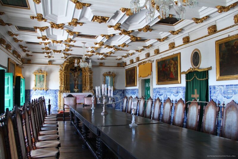 There are numerous tile panels in shades of blue at the entrance to the church, on the altar and in the sacristy, depicting scenes alluding to St Francis of Assisi – his birth and his renunciation of material possessions, works by Bartolomeu Antunes de Jesus, one of the great Portuguese tile masters.