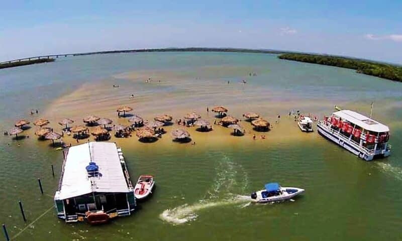 One of the most popular ways to get to Croa do Goré Island is to take catamaran trips from various points in Aracaju, such as Orla Pôr do Sol.