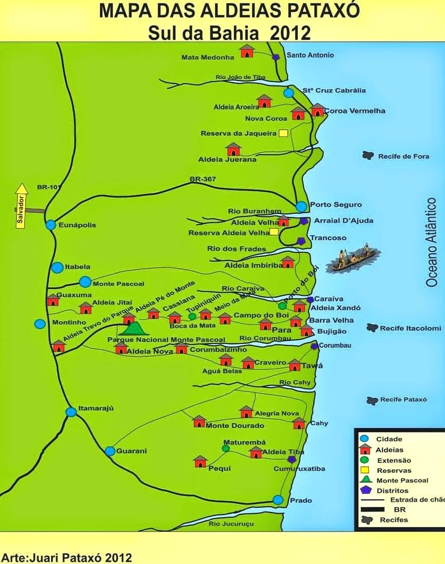 The Pataxós Indians have been concentrated in villages for at least 150 years, occupying the coast of Bahia on the so-called Discovery Coast.