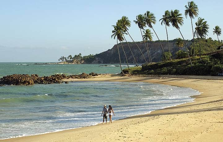 One of the most beautiful beaches in Paraíba, Coqueirinho is known for its crystal clear waters, colourful cliffs and coconut trees that line the sand.