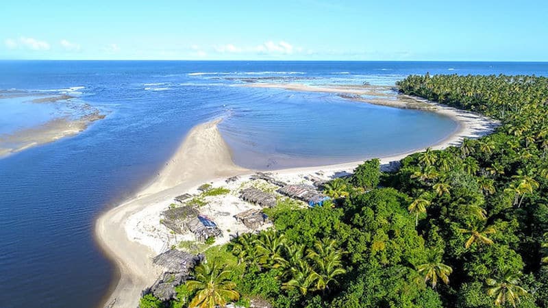 Taipu de Fora Beach, one of the most famous beaches on the south coast of Bahia, is more than 7 kilometres long, with majestic coconut trees, coral reefs and clear sand.