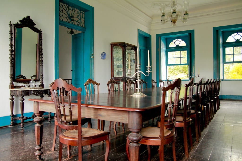 A casa-grande, construída em 1863, preserva os móveis ao estilo neoclássico e a decoração típica da sociedade do século XIX.