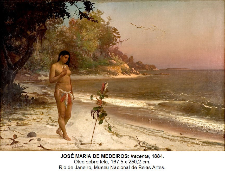 En O último tamoio (El último tamoio), el bahiano Rodolfo Amoedo (1857-1941) contribuyó a forjar la imagen del indio, emblema de la nación que se estaba creando. Telles Júnior (1851-1914), natural de Pernambuco, utilizó la lengua que había aprendido en Europa para retratar el Nordeste.