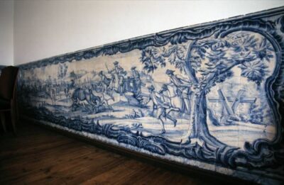El azulejo portugués es el protagonista de un verdadero repertorio de grabados. Aparece en escenas históricas, religiosas, de caza y de guerra, entre otras, y está aplicado a paredes, suelos y techos.