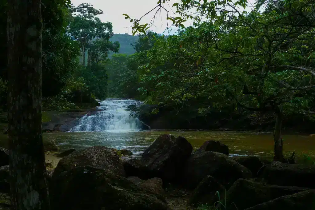 La cascada de Pedra Redonda es un lugar sereno para bañarse y relajarse. Aunque es pequeña, puedes sumergirte en el agua o descansar sobre las rocas.