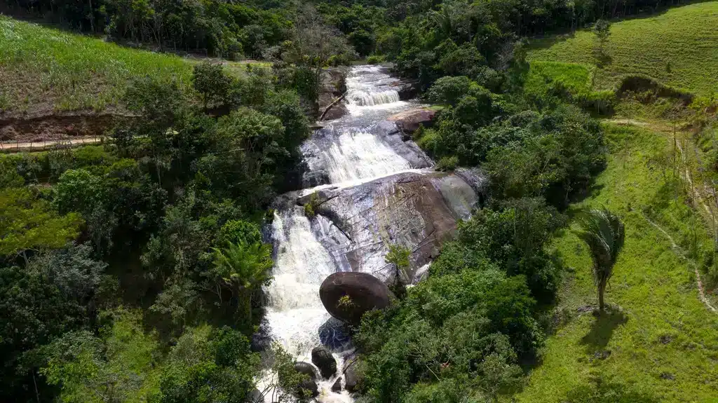 - Características: la cascada tiene una caída importante que forma una gran piscina natural en el fondo, perfecta para nadar. Los alrededores están rodeados de bosque atlántico, lo que conforma un entorno muy bello y virgen.