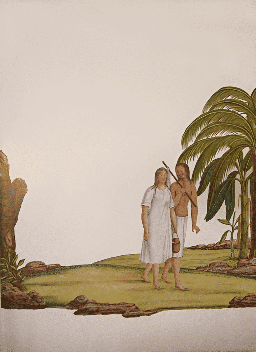 Aunque sabemos que se trata de personas que pertenecen y se mueven en un contexto urbano, nada en su representación es un claro indicio de ello, ni siquiera la pequeña parcela de tierra que las sustenta.