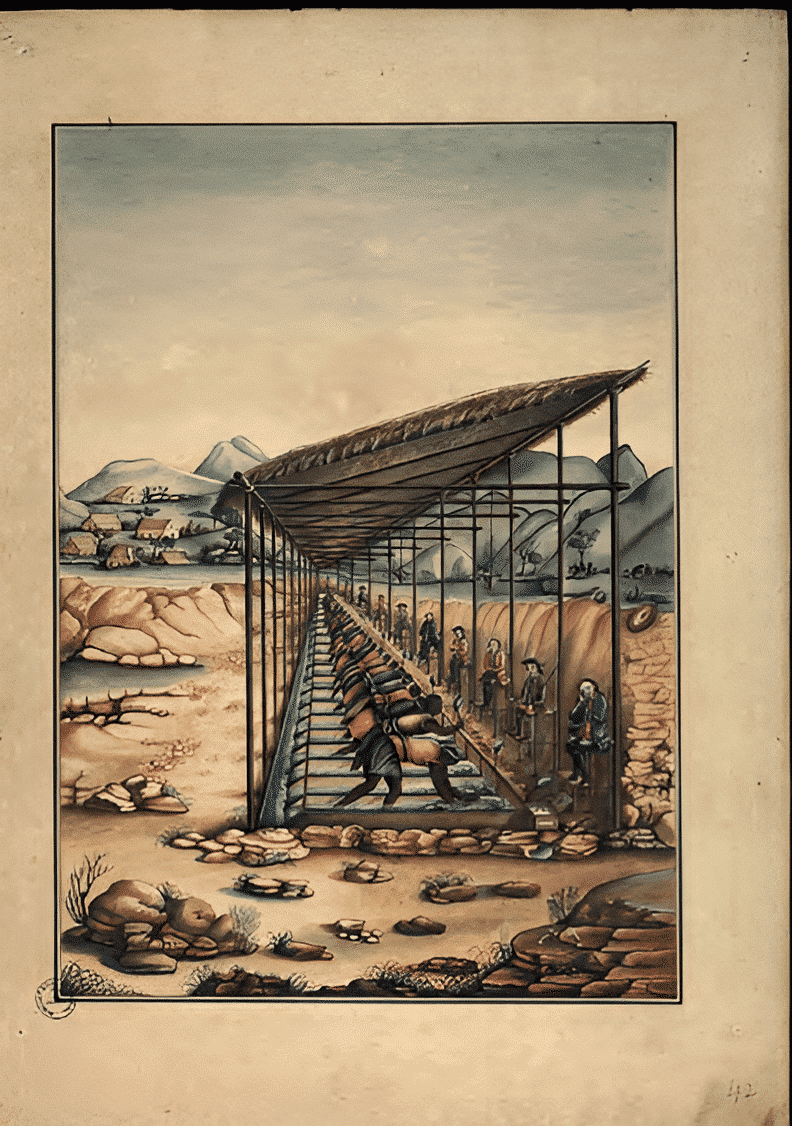 Este prospecto fue tomado por Carlos Julião, Capitán de Minas del Regimiento de Artillería de Corte, con motivo de su visita a la Nau Nossa Senhora Madre de Deus.