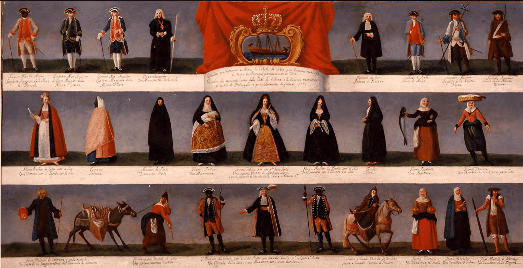 Naturalmente, está implícita una cierta operación de nivelación -si el término es conveniente en este contexto-, ya que, en su variedad, expresada en la vestimenta y el adorno, los personajes son equivalentes, pues viven bajo las mismas reglas de un gobierno portugués. Todos estos territorios y todos estos pueblos están unidos. Y todo esto es Portugal.
