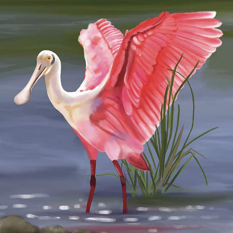 El ave, que mide 87 centímetros de largo, también llama la atención por la belleza de su plumaje rosado, que le fue otorgado por los carotenoides presentes en su dieta.
