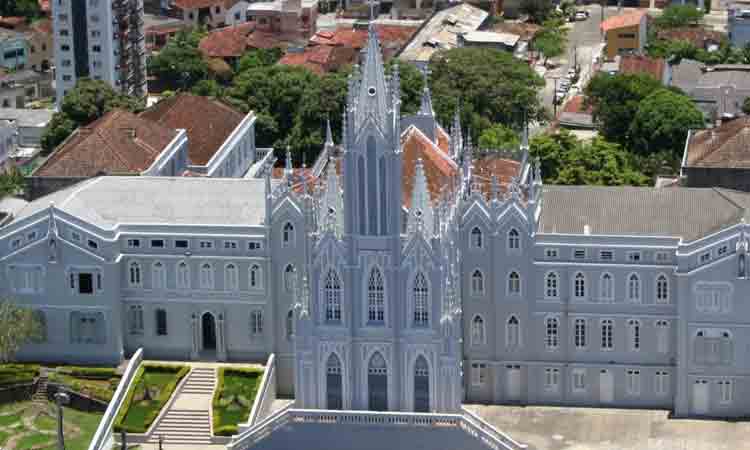 - Construcción: Iniciada en 1927 y terminada en 1929, en estilo neogótico, a partir de un plano francés adaptado por Salomão da Silveira.