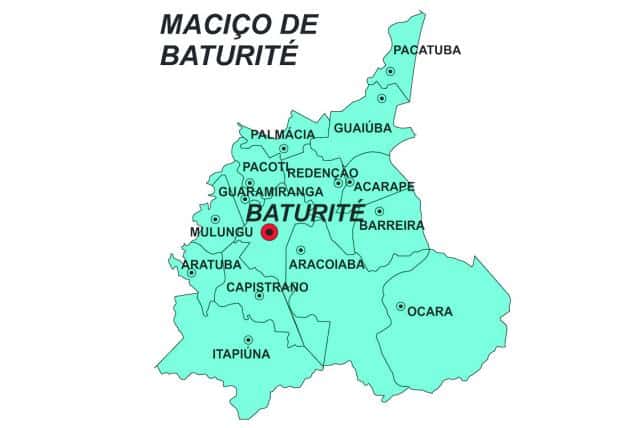 La sierra, también llamada Macizo de Baturité o Sierra de Guaramiranga, se encuentra en el centro-norte del estado de Ceará y abarca doce municipios. Ciudades como Canindé, Palmácia, Itapiúna, Capistrano, Caridade y Redenção se encuentran en zonas de alto relieve. Por otro lado, Aratuba, Mulungu, Guaramiranga, Pacoti, Baturité y Acarape ocupan las regiones montañosas.