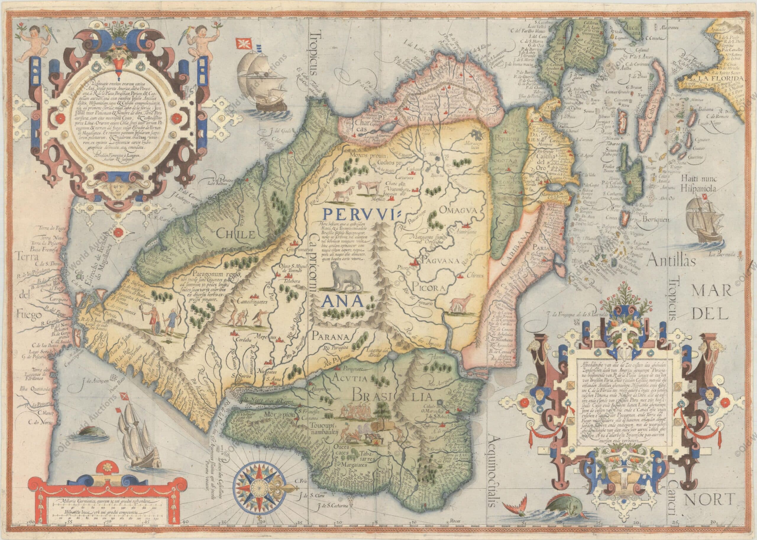 Se trata de uno de los mapas más impresionantes y decorativos de Sudamérica, y constituye un importante registro temprano del continente.