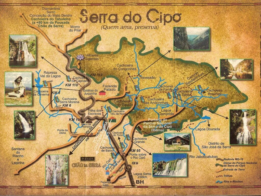 El río Cipó nace en el propio Parque Nacional da Serra do Cipó, por lo que siempre citamos el parque como referencia para obtener información.