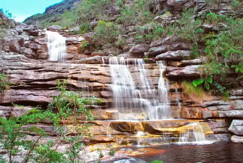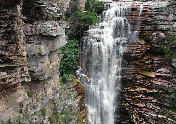 La cascada de Pancada Grande, famosa por sus Três Pancadas, es una opción para niveles avanzados de rappel.