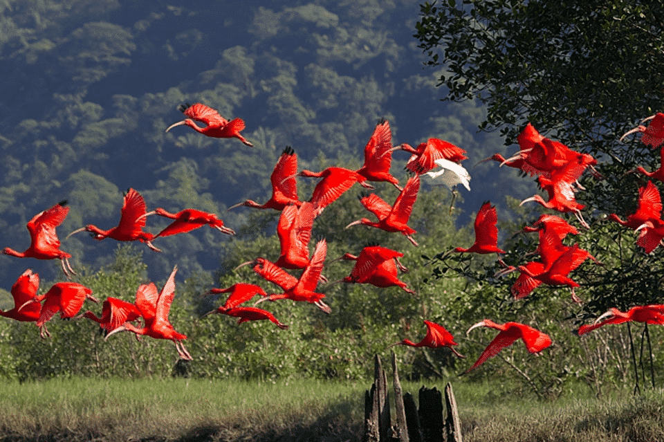 - Biodiversidad: la fauna de la Selva de Guarás es rica y diversa, e incluye especies como el guará, ave de plumaje rojo que da nombre a la zona, así como garzas, espátulas y diversas especies de peces y crustáceos en los manglares. Estos ambientes son fundamentales para la reproducción y alimentación de muchas especies, además de servir de refugio a animales en peligro de extinción como el manatí.