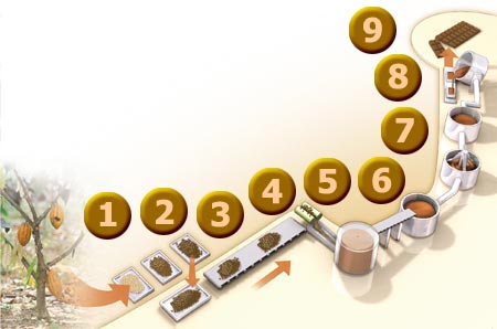 A transformação do chocolate no doce que conhecemos só irá acontecer mais tarde, depois das sementes do cacau passarem por vários processos industriais, como a decomposição da matéria-prima, adição do leite, do açúcar e a sua moldagem nos tabletes vendidos nos supermercados.