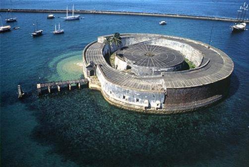 Inspiré du Château Saint-Ange (Italie) et de la Tour du Bugio (Portugal), le Fort de São Marcelo, également connu sous le nom de Fort du Mer (anciennement appelé Fort de Notre-Dame du Pópulo), est situé sur une couronne de sable à 300 mètres de la côte de la Baie de Tous les Saints, face au cœur du centre historique de Salvador.