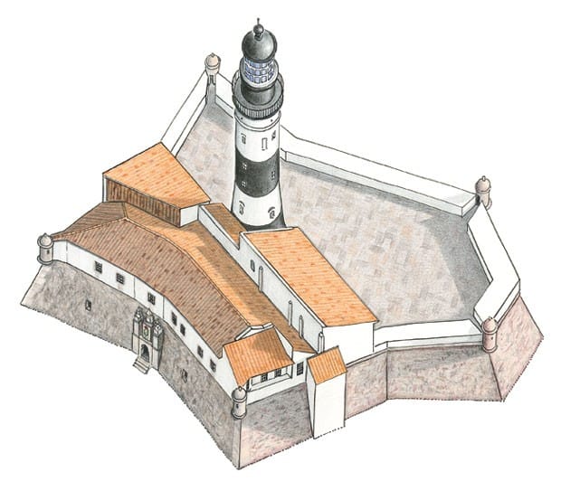 Le Fort de Santo Antônio da Barra, le premier du Brésil, a été construit vers 1536 par Francisco Pereira Coutinho, donataire de la Capitainerie de Bahia. Entre 1583 et 1587, il a été rénové et agrandi. Entre 1596 et 1602, le fort a été reconstruit en pierre et en chaux sous la forme d’une tour octogonale, projet attribué à l’ingénieur en chef du Portugal, le Cremonese Leonardo Torriani.
