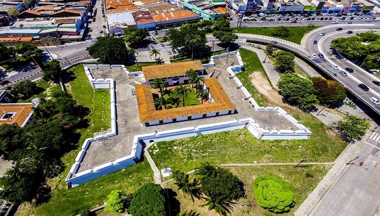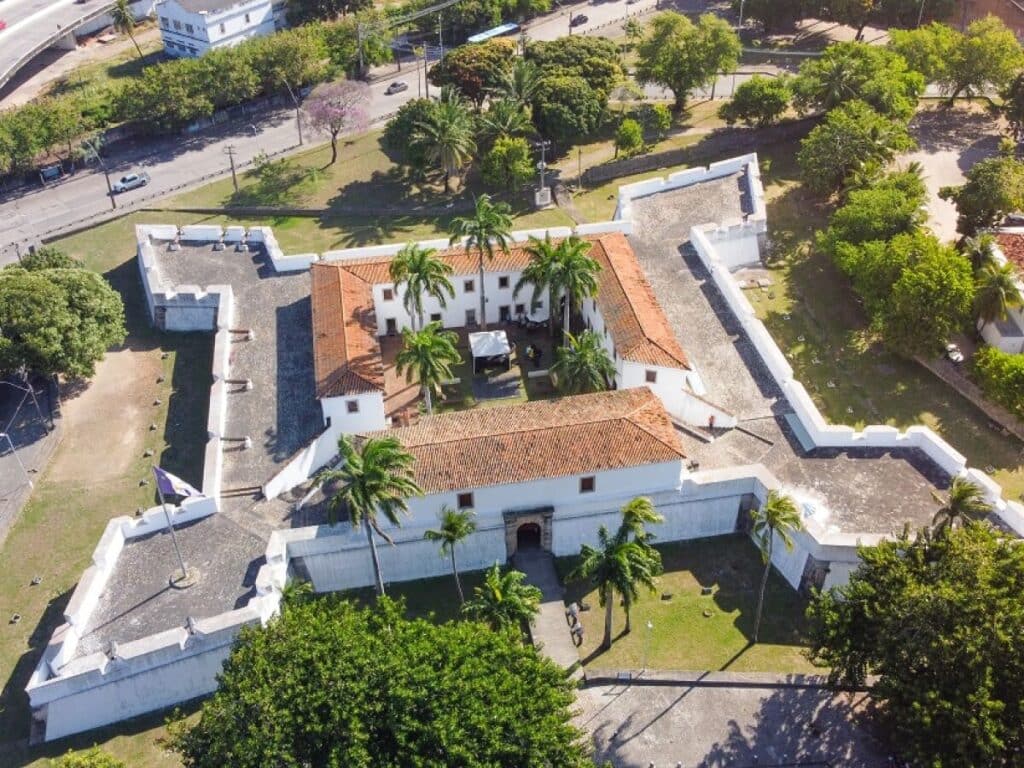 Situé à l’entrée du port de Recife, le fort de Brum a été construit en 1629 par les Portugais, puis pris par les Hollandais un an plus tard. Construit à l’origine en pisé, il a été reconstruit en pierre après l’expulsion des envahisseurs, en 1654 (Praça Comunidade Luso-Brasileira, s/n, Recife Antigo).