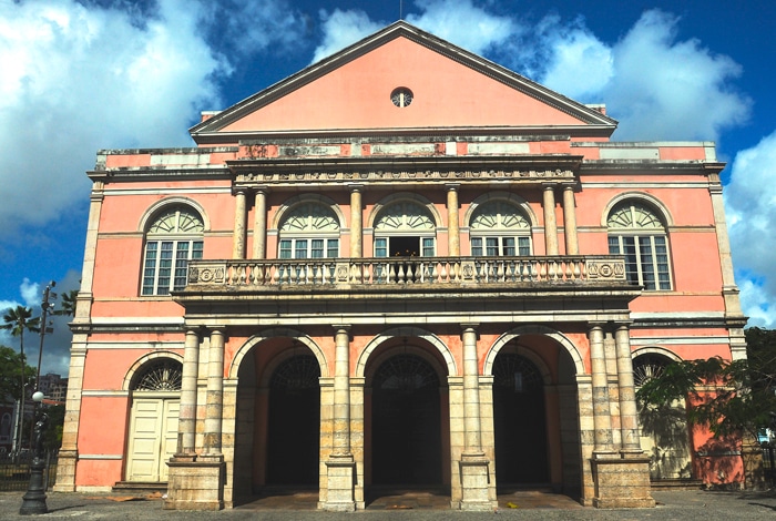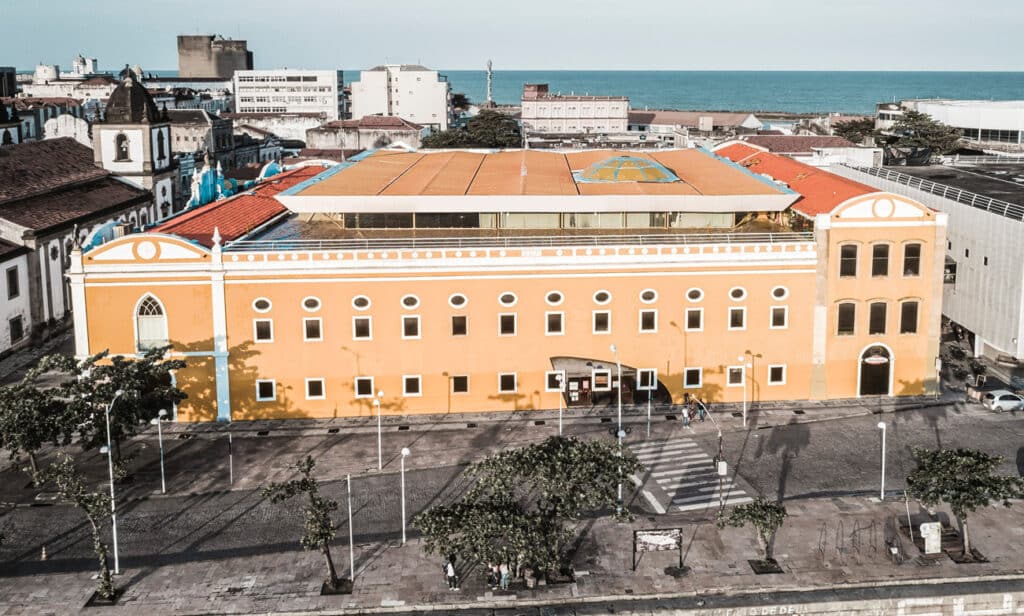 L’architecture éclectique des bâtiments qui l’entourent est frappante : l’Institut culturel Bandepe, construit en 1914 et restauré en 2002, qui ouvre ses portes pour des expositions d’art, l’Association commerciale de Recife, datant de 1915, et le bâtiment de la Bourse, construit en 1912.