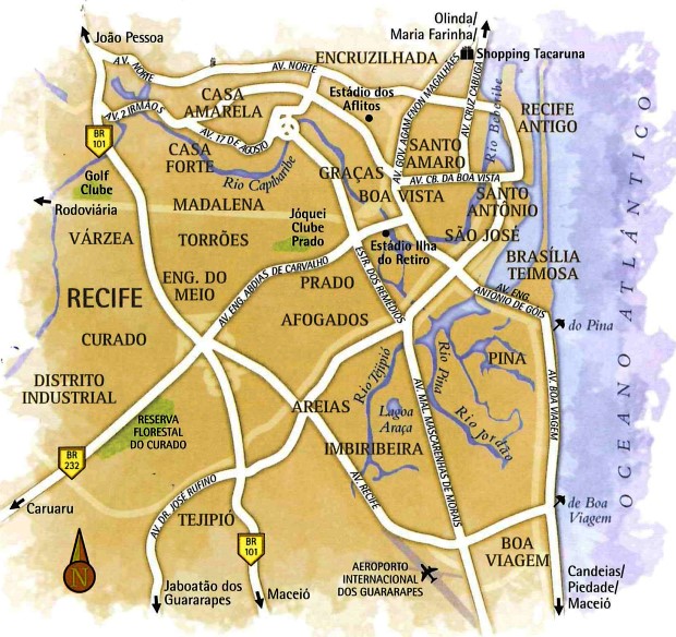 Les moulins à canne à sucre environnants ont donné naissance à des quartiers tels que Graças, Madalena et Casa Forte, toujours situés sur les rives du fleuve Capibaribe qui traverse la ville.