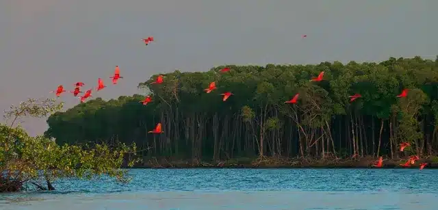 - Observer la nuée de guarás : l’un des moments les plus magiques aux Canaries est l’observation de cette nuée au crépuscule. Ces oiseaux, au plumage rouge intense, retournent dormir dans les mangroves, créant un spectacle visuel magnifique sur le ciel au coucher du soleil.