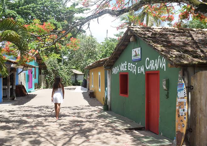 Caraíva est traversée par des plages désertes, pratiquement isolées, qui séduisent les amateurs de nature intacte, loin de l’agitation des villes.
