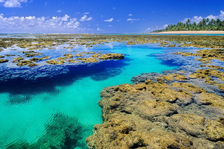 Considérée comme l’une des plus belles plages du Brésil, Taipu de Fora se distingue par sa piscine naturelle d’environ un kilomètre de long, pleine de poissons colorés et de formations coralliennes.