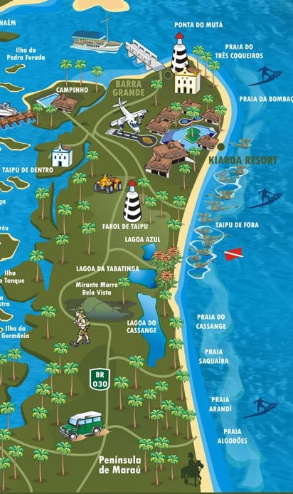 Le plus grand village de la péninsule de Marau, Barra Grande, a conservé son caractère de village caiçara, bien qu’il s’agisse de la destination touristique la mieux dotée en infrastructures, avec ses nombreuses auberges, bars et restaurants.